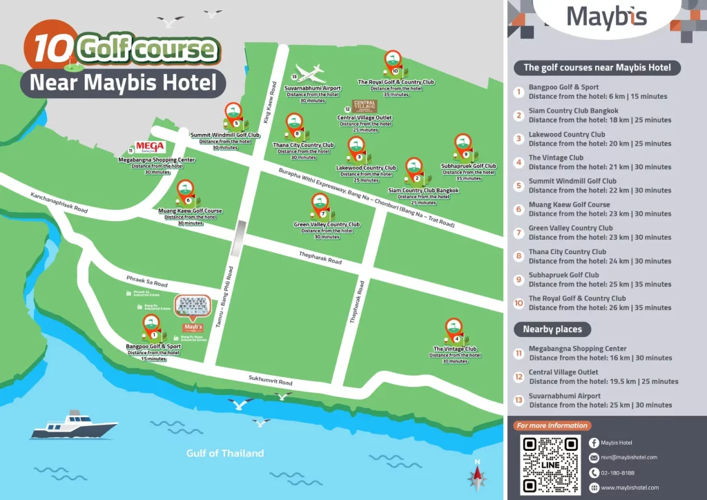 ถ้าคุณคือคนรักกอล์ฟที่กำลังวางแผนมาพักผ่อนหรือทำธุรกิจในสมุทรปราการ Maybis Hotel คือจุดเริ่มต้นที่ดีที่สุดของการเดินทางครั้งนี้